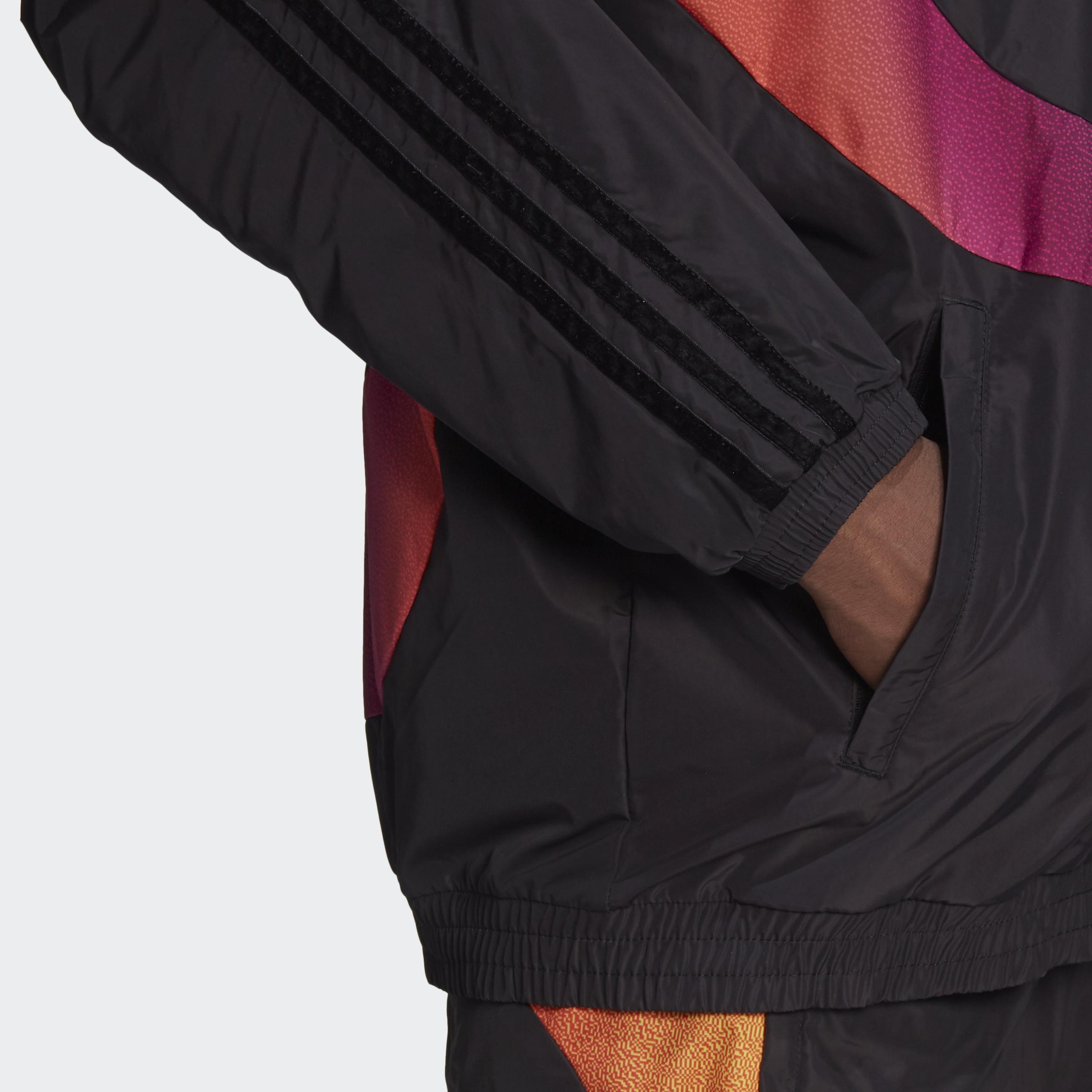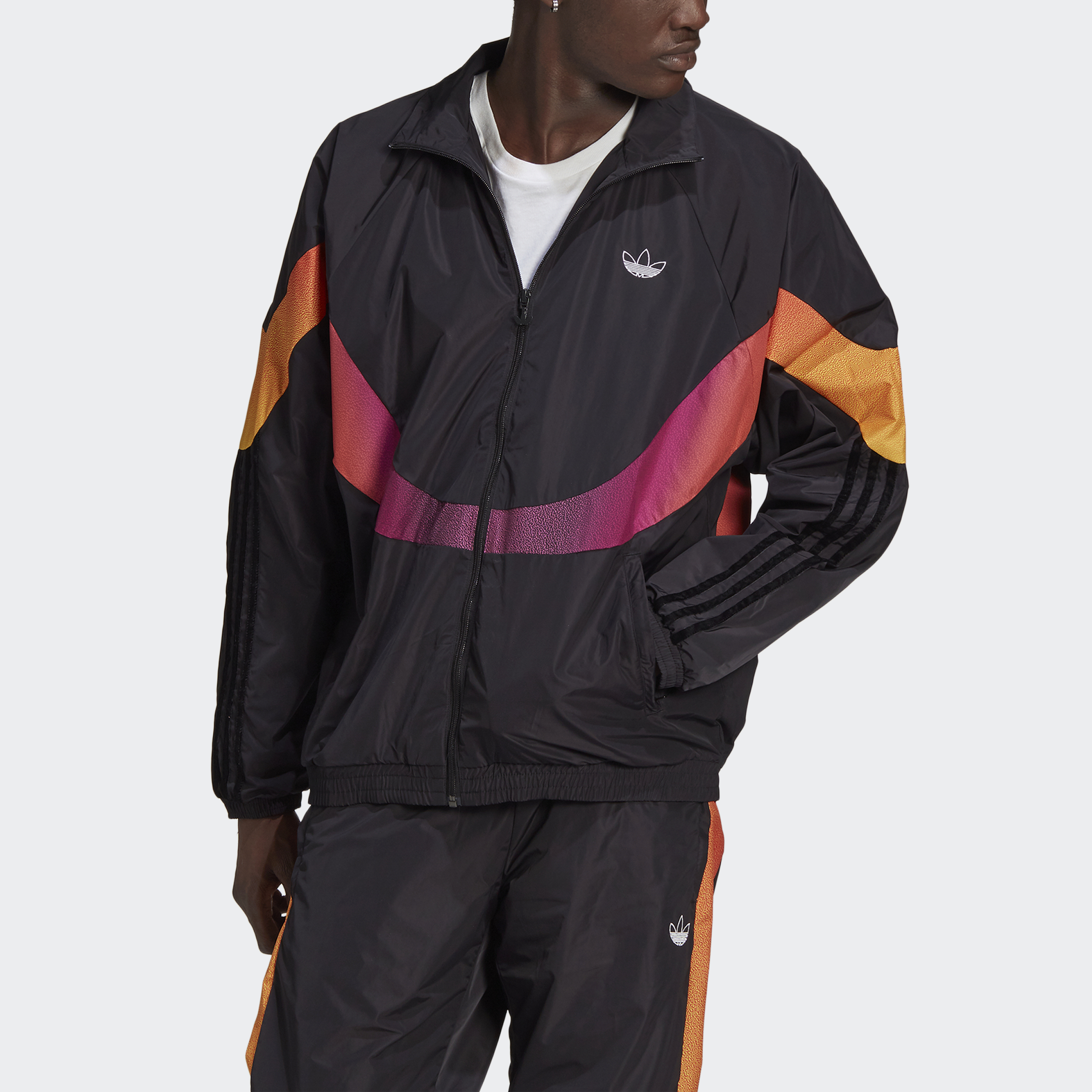 Come out on top with the winning combo of sport and total swagger. The ribbon of colours that flows around this adidas track jacket can't be missed. One, because it's bright. Two, because it's pure, undeniable steez. The loose shape layers casually. Just how you'll be chillin'. This product is made with recycled content as part of our ambition to end plastic waste.