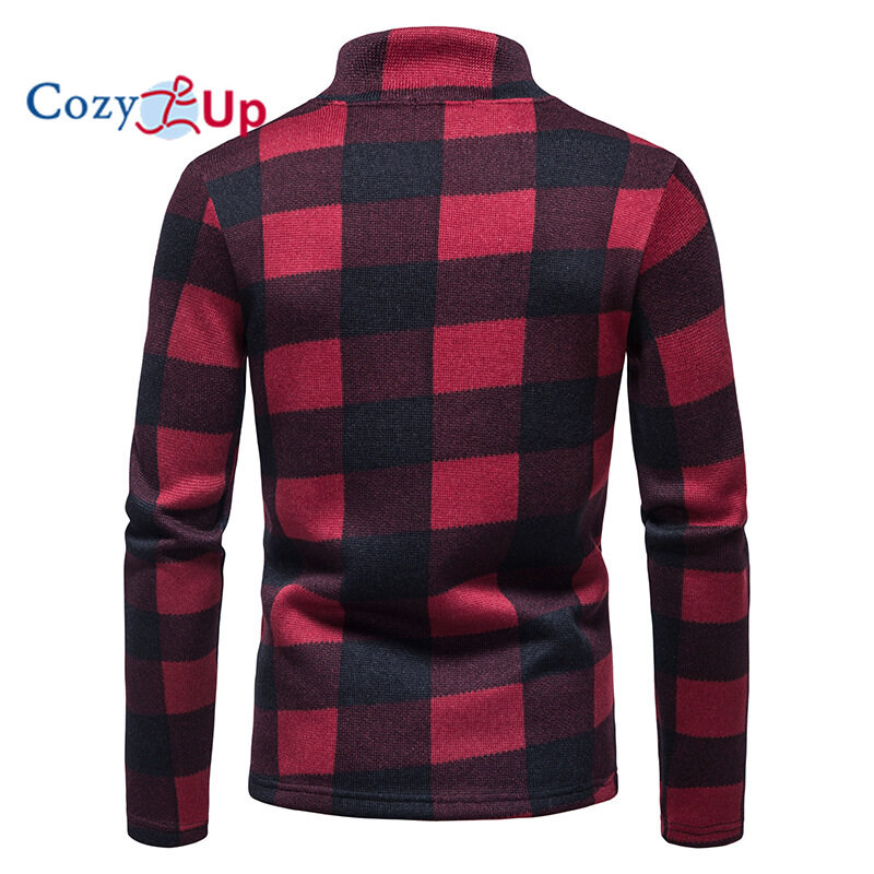 Cozy Up Men Sweater Fashion Zipper Decoration Plaid Batik Casual Stand Collar Pullover