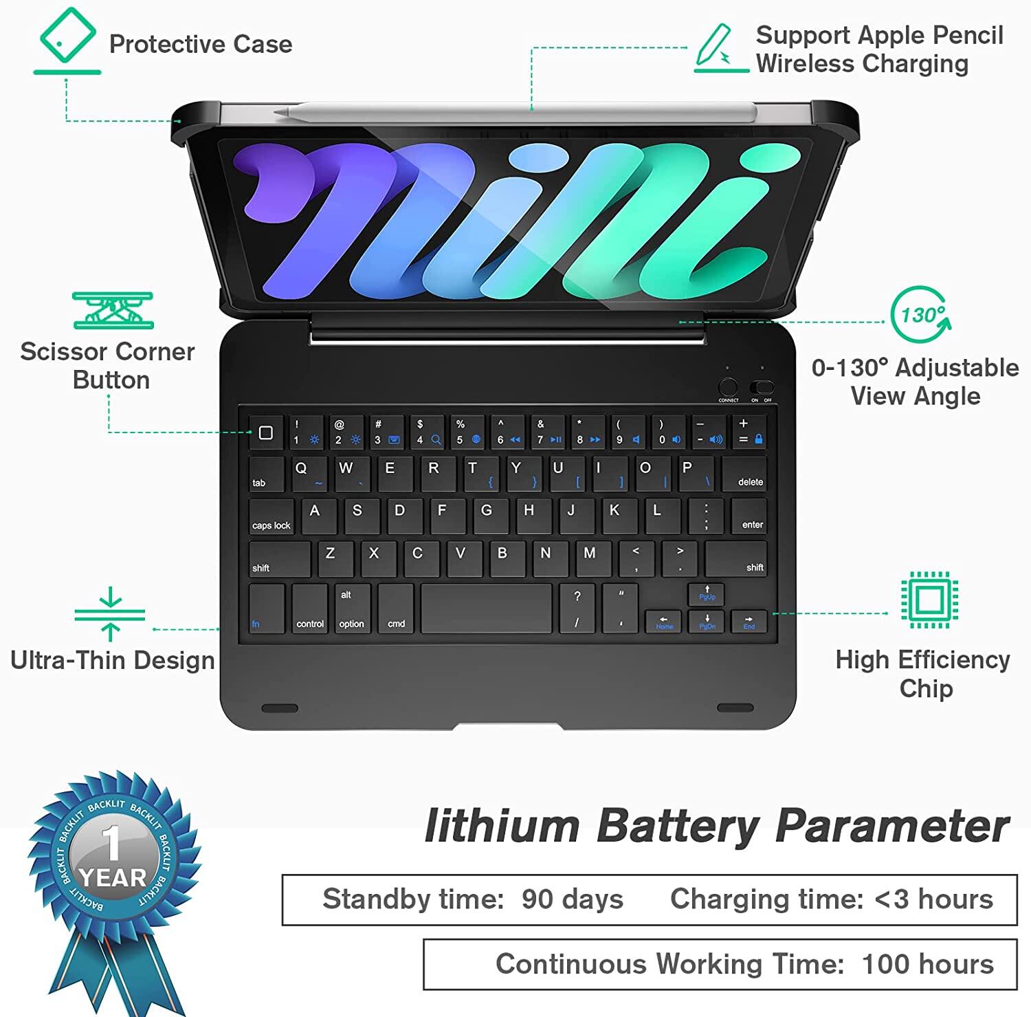 Wireless Bluetooth iPad Keyboard Case for iPad Mini 6th Gen 2021 8.3 Inch iPad mini 5 4 with Auto Sleep/Wake Keyboard