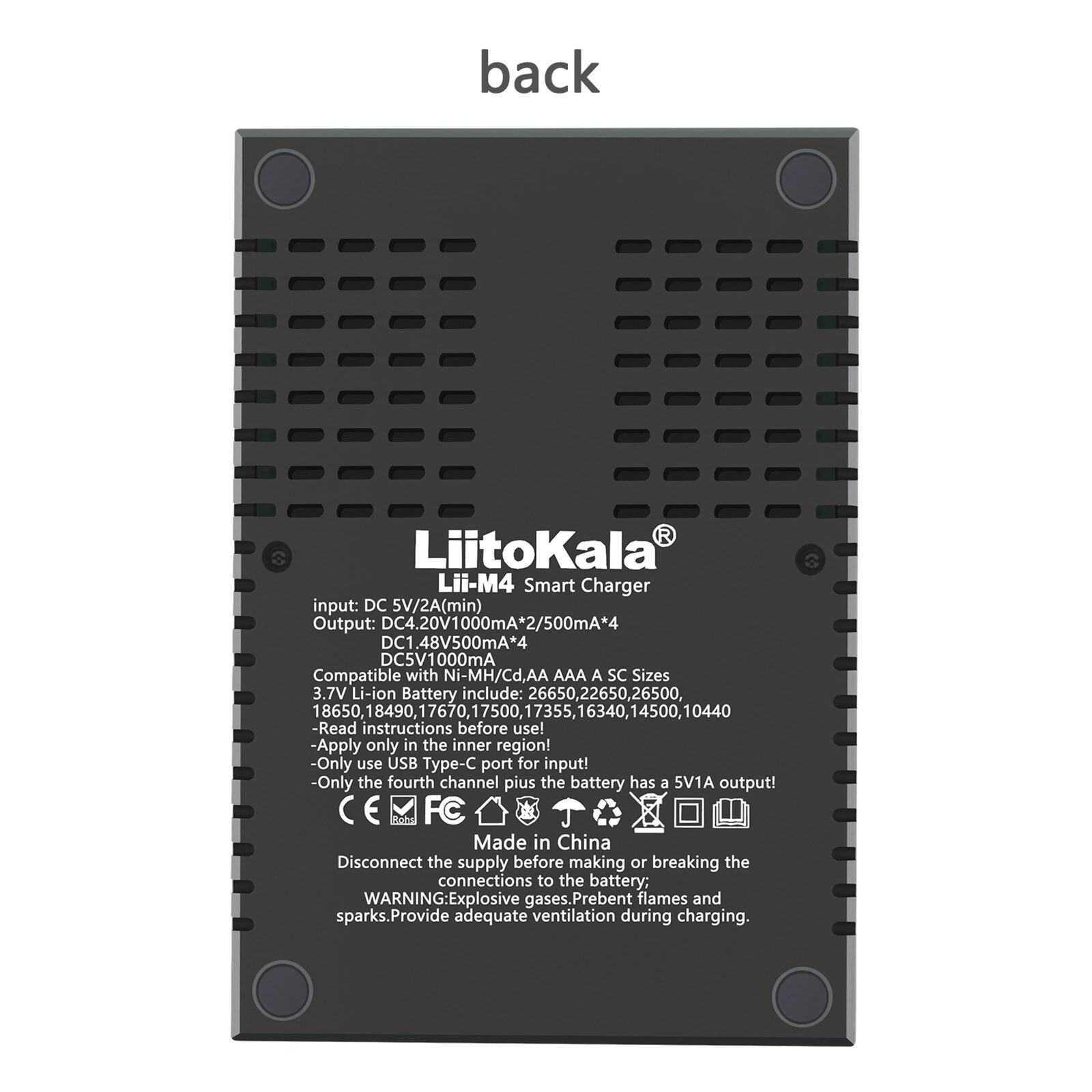 4-slots independent charging and independent management system, Type-C 5V/2A input.