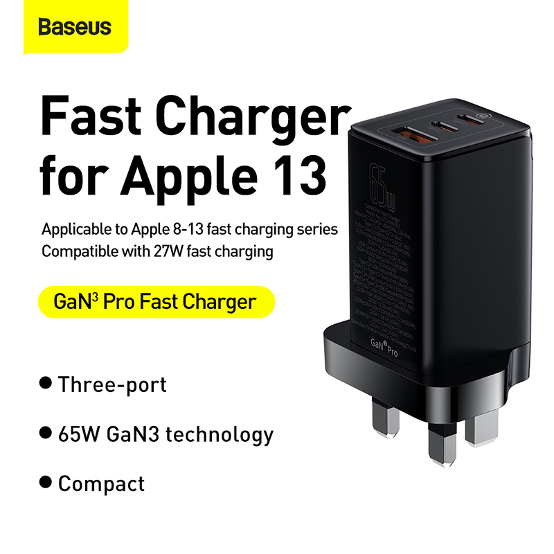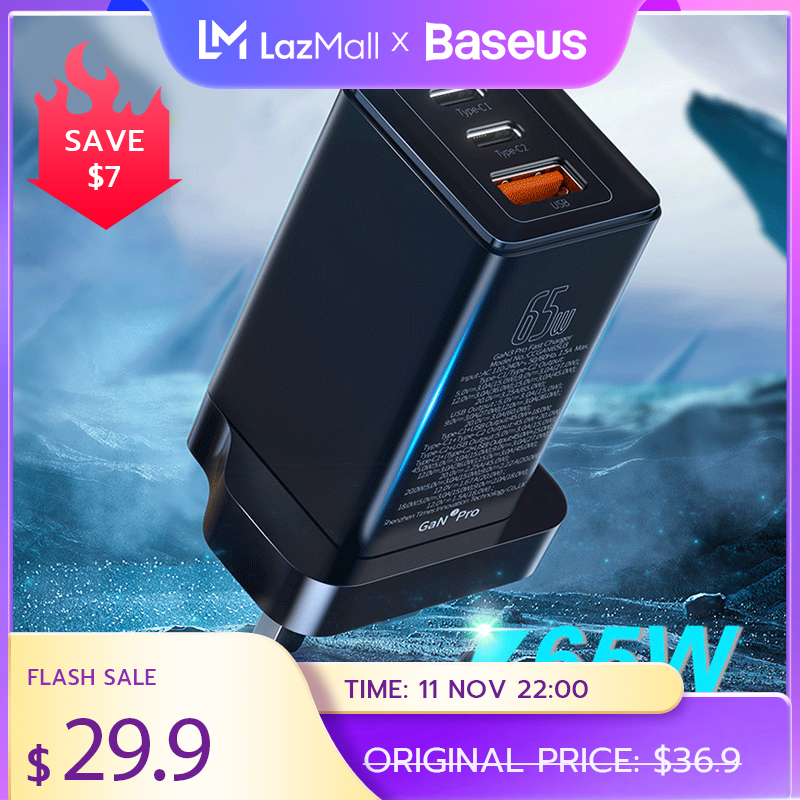 Baseus 65W GaN3 Fast Charger PD3.0 QC4.0 USB Type C Quick Charger For iPhone 13 Pro Max Laptop Samsung Huawei