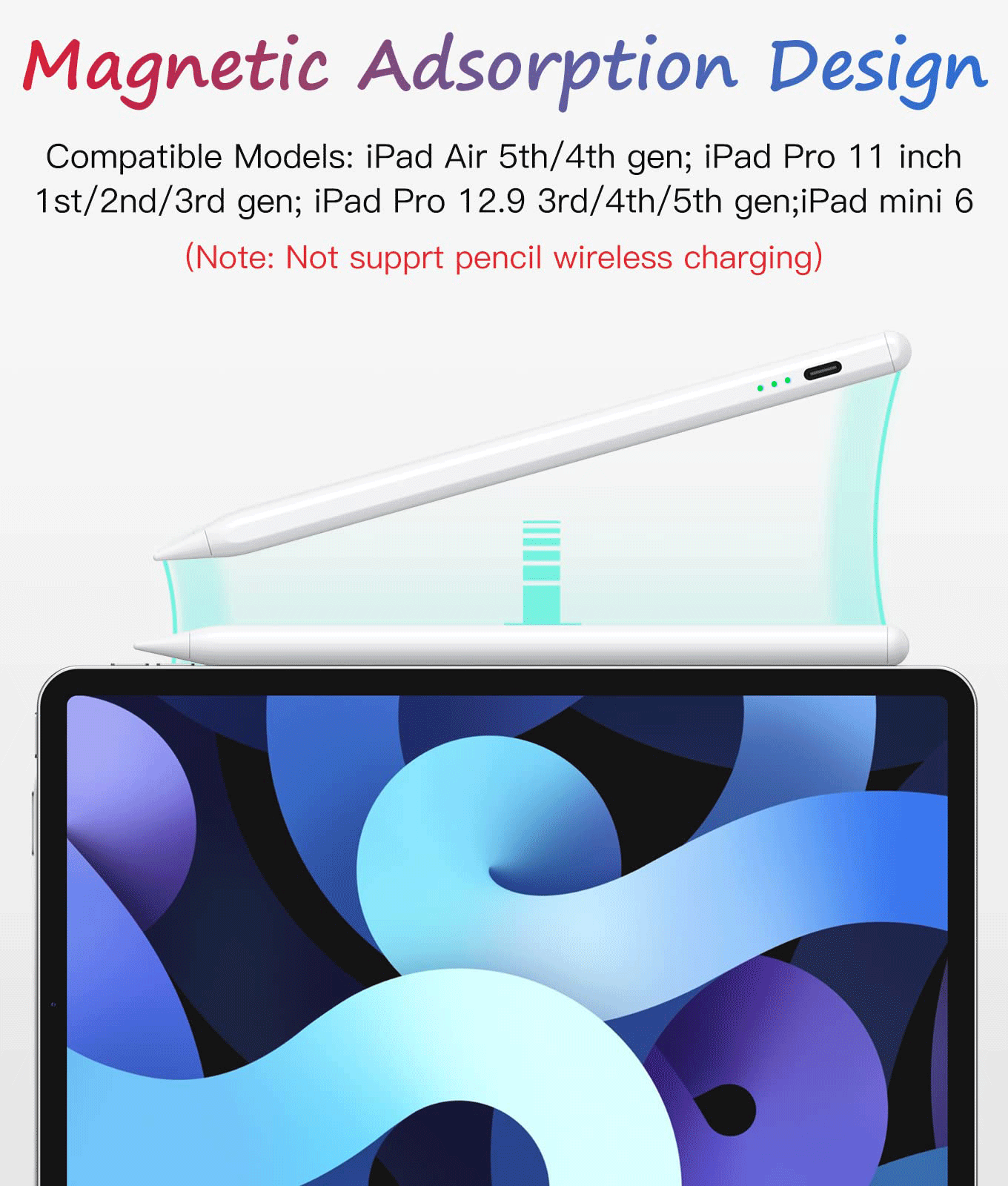 1. Not compatible with ipad before 2018, and not compatible with iPhone, Android and windows devices
