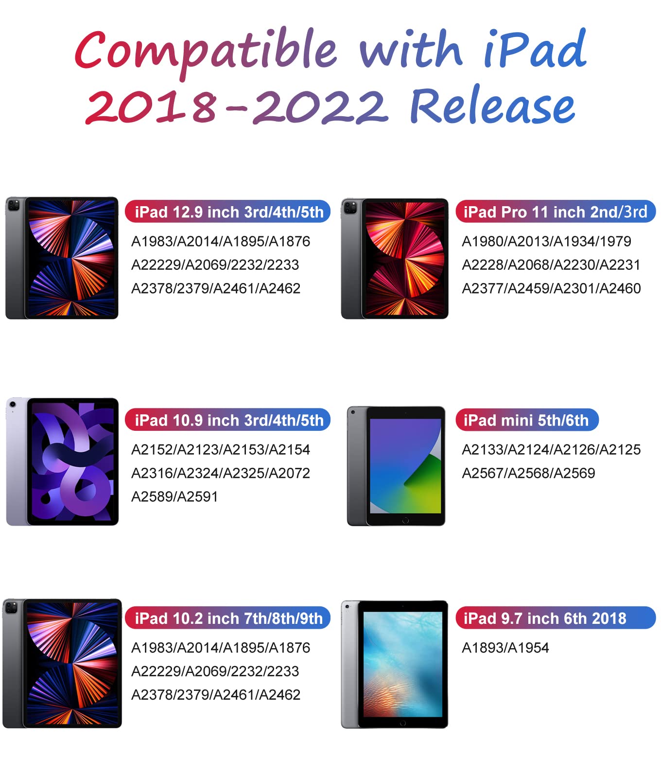 1. iPad 10/9/8/7/6 th generation (2022/2021/2020/2019/2018)