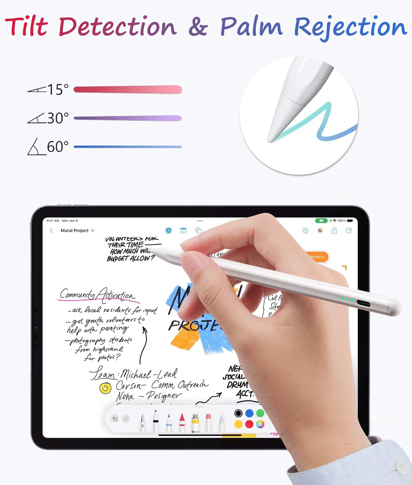 LuckySambo Stylus Pen Apple iPad Pencil, Palm Rejection & No Bluetooth Required, Active Pencil for iPad Air 5/4/3 Gen, iPad 9/8/7/6 Gen, iPad Pro(11/12.9 Inch) ,iPad 10.2/10.9Inch