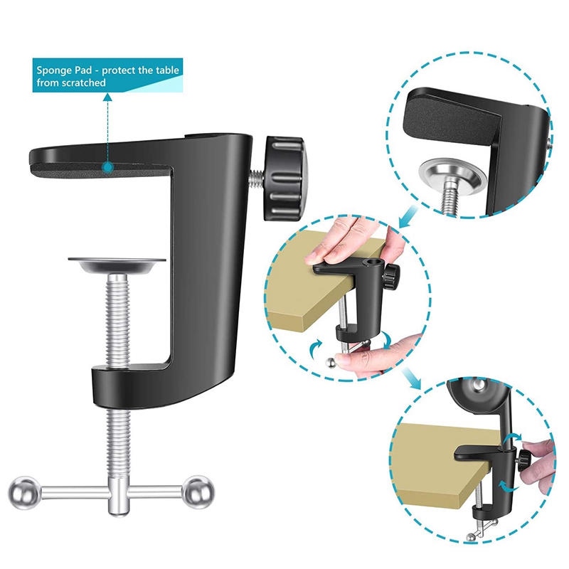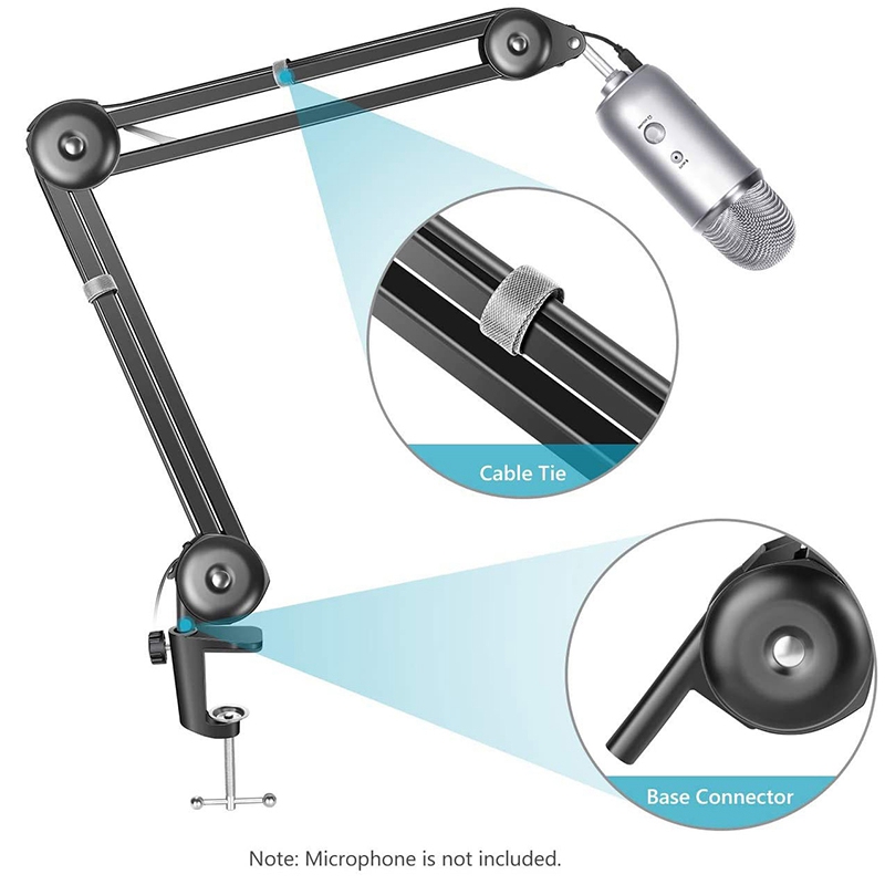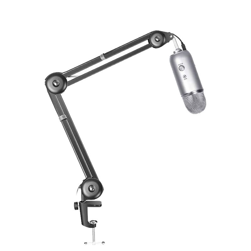 ADJUSTABLE SUSPENSION BOOM SCISSOR ARM STAND:Adjust the suitable angle and height to show your perfect voice; Can be mounted on the announcers' table with the table mounting clamp