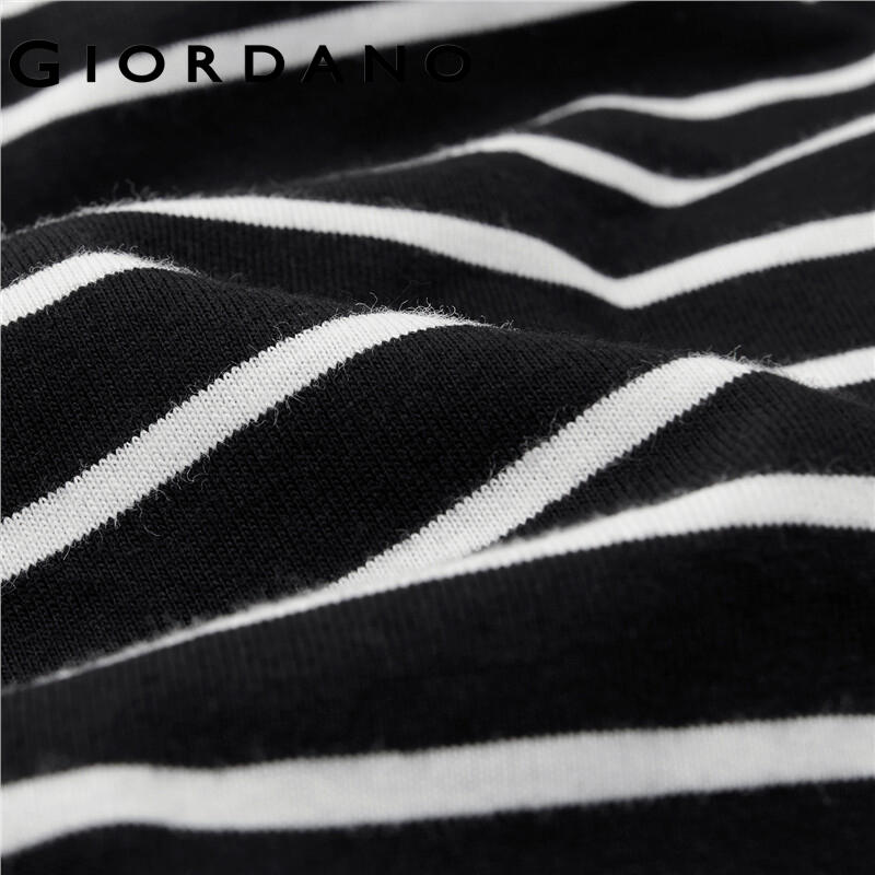 GIORDANO Women T-Shirts Long Sleeve Ribbed Crewneck Casual T-Shirts 100% Cotton Contrast Color Stripe Relaxed Comfy Tee 05322790