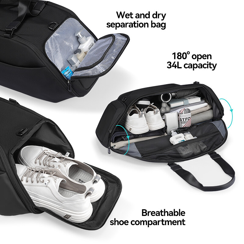 Mark Ryden Men's Black handbag Travel Bag Waterproof Large Capacity Travel Duffle Multifunction Casual Crossbody Bags