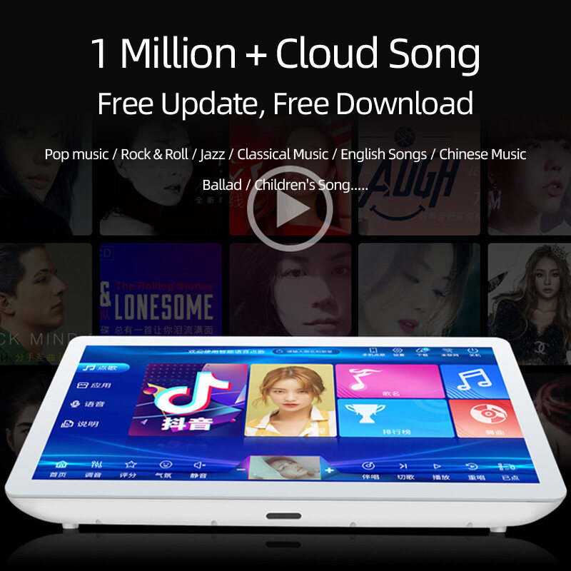 19-inch karaoke touch screen machine player, built-in wifi, support youtube installation.Built-in DSP, karaoke sound is nice, supports HDMI output and can be directly connected to TV.The karaoke touch screen machine player supports RCA audio output, which can be easily connected to the speaker system.1 million + cloud songs, popular music is updated monthly, and you only need to have a network to download the latest songs for free.The content of the songs are mainly Chinese and English songs, including various styles of music, pop, rock, jazz, folk, etc. Of course, there are also children's songs, and children can also sing karaoke! ! !The touch screen machine player has no stand and is placed directly on the desktop.There is no need to manage the hard disk storage manually. When the hard disk storage is full, the downloaded new songs will automatically overwrite the oldest previously downloaded old songs.