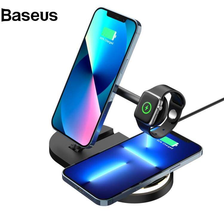 Baseus CF36 15W Wireless Charging Stand for iPhone / Apple Watch / AirPods Folding Charger with LED Light + USB Output