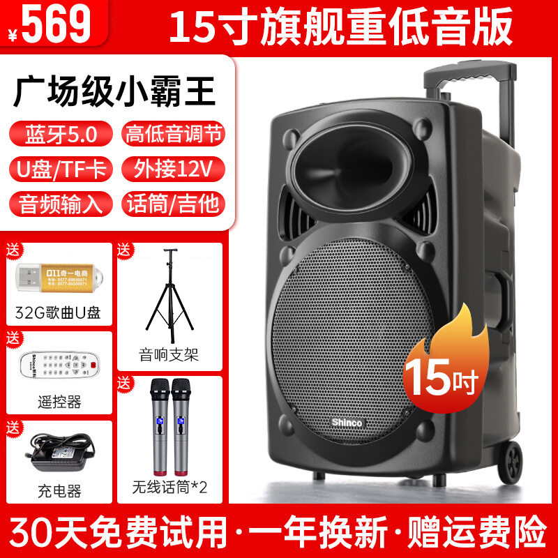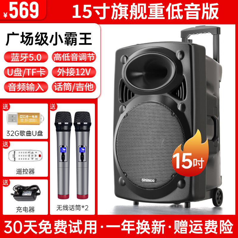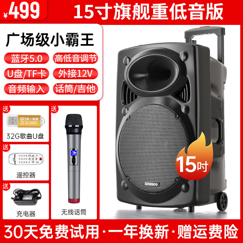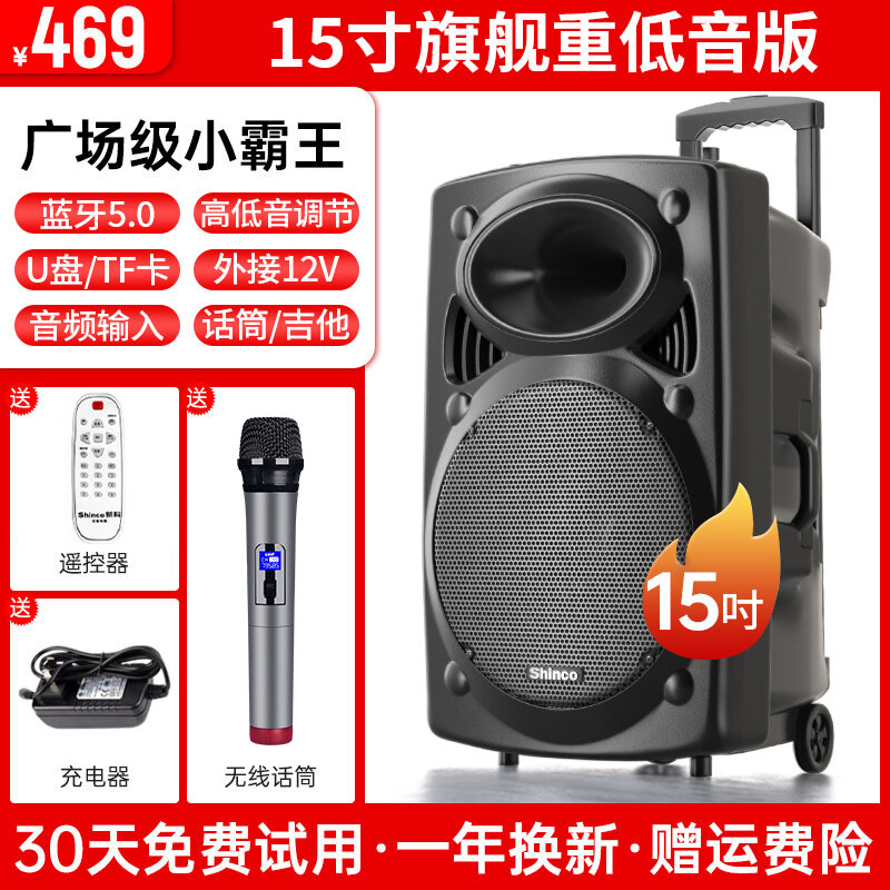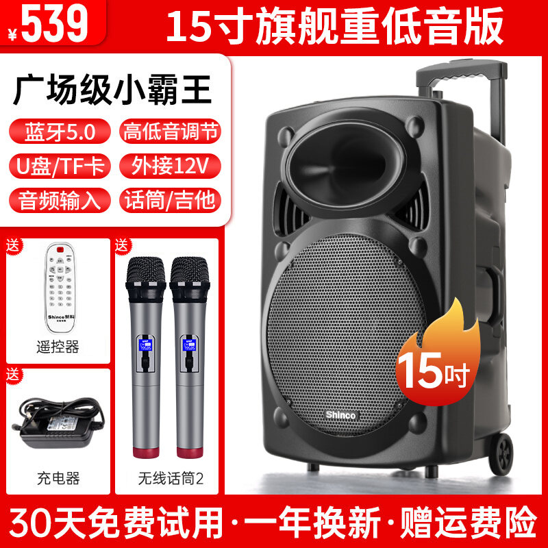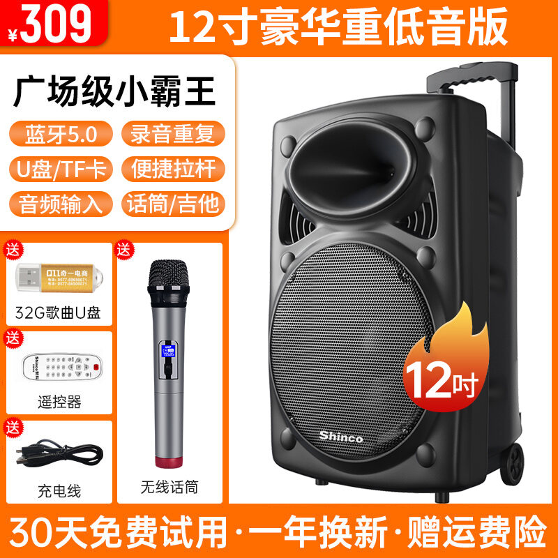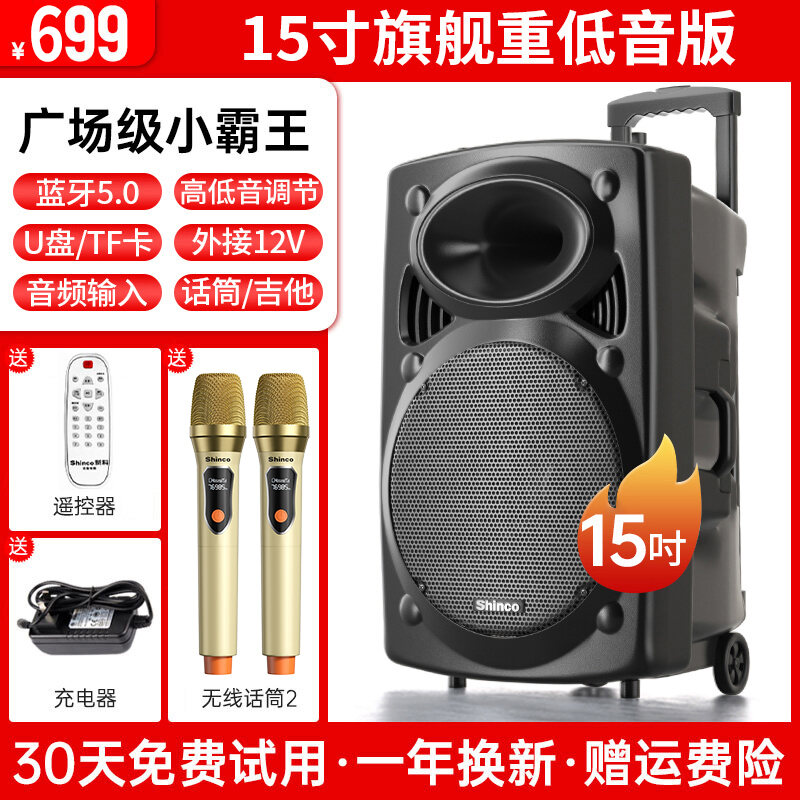 Xinke Square Dance Audio Outdoor Karaoke Mobile Pull Bar Bluetooth Speaker with Microphone Store Dedicated High Volume