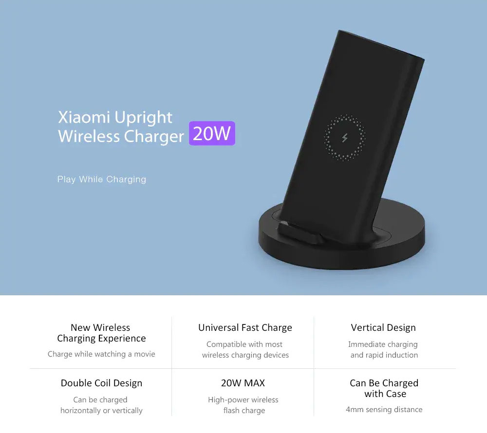 Xiaomi Mi 20W Vertical Wireless Charging Stand Quick Charge Type-C with Safe Stand Horizontal