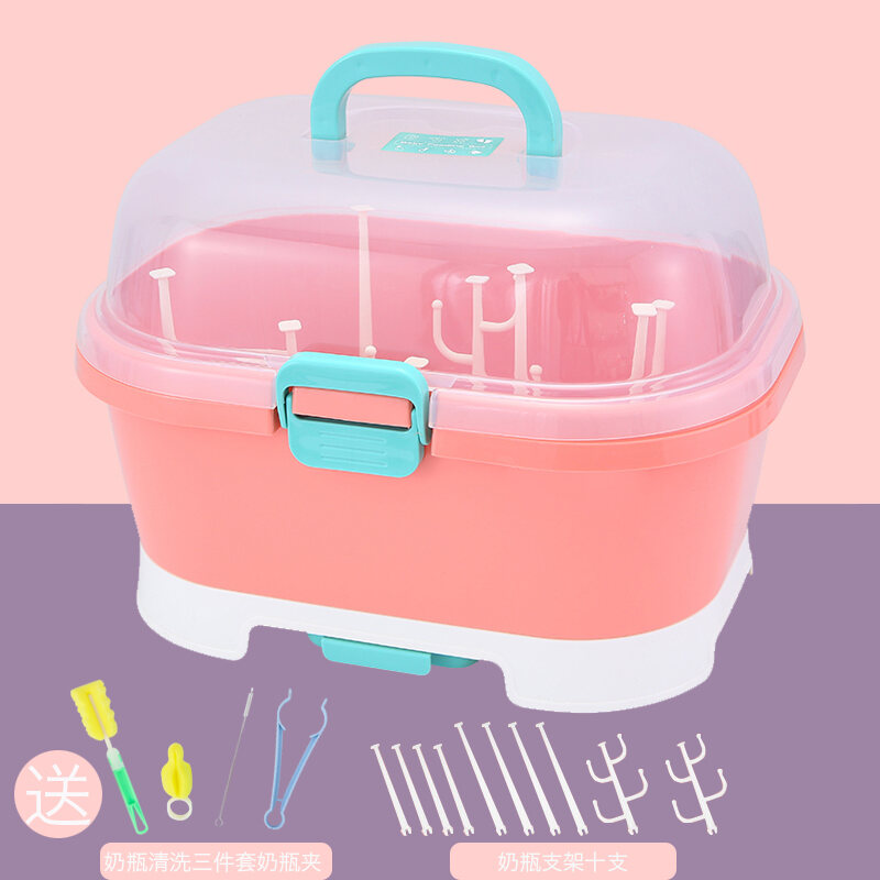 Baby Bottle Storage Box Portable Large Dust-Proof Drying Draining Rack Baby Tableware Organizing Dry Storage Box