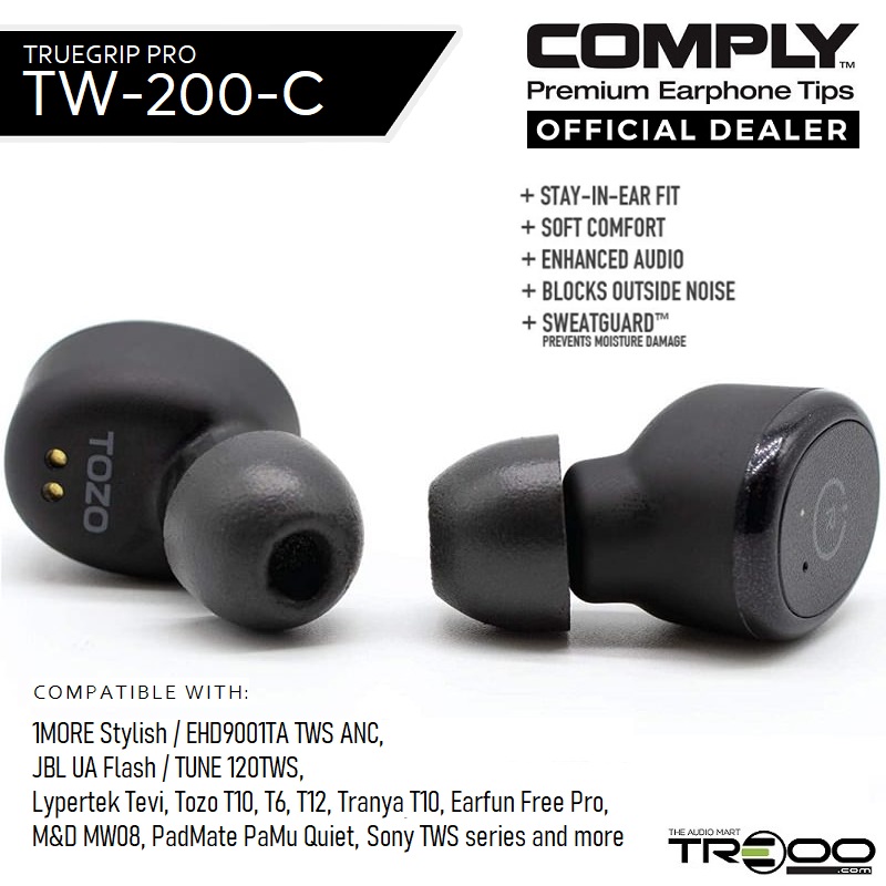 Comply TrueGrip Pro TW-200-C Foam Eartips (for Earfun, Lypertek, PadMate, Sony, etc. True Wireless Earbuds)