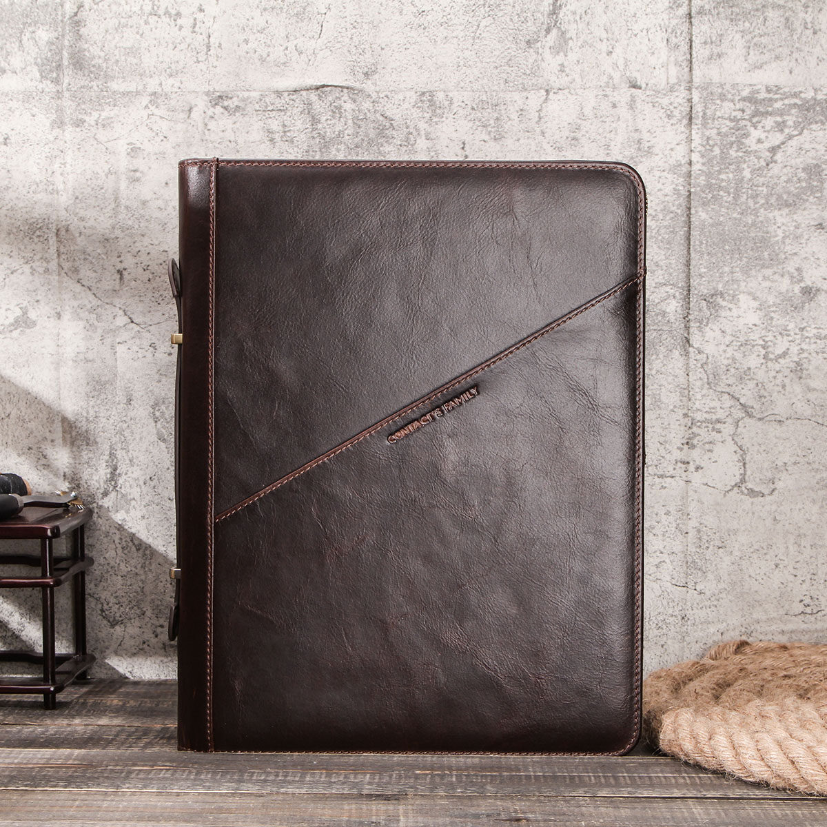 CONTACT'S FAMILY Retro Padfolio Cow Leather Case for iPad Pro 12.9 2020 Journal Document A4 Portfolio bag For 13.3” Macbook Air