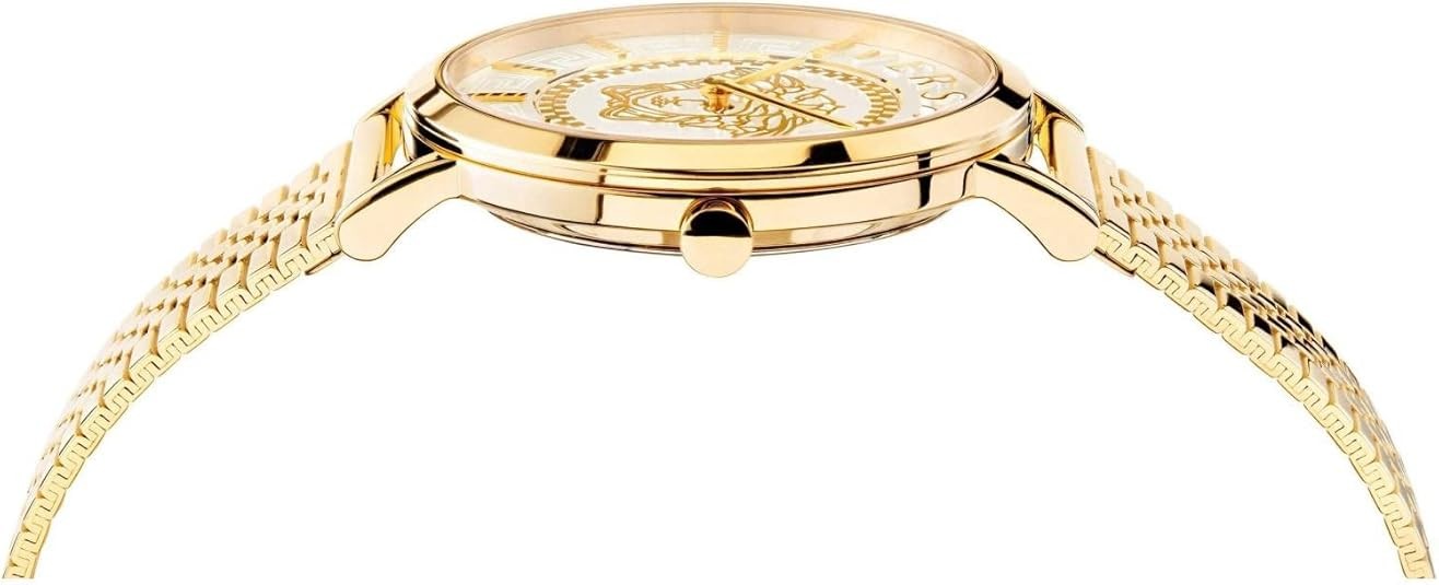 The Versace women's watch V_Essential 36 mm VEK401021 is a luxurious watch for women with a 36 mm stainless steel case in the colour gold.